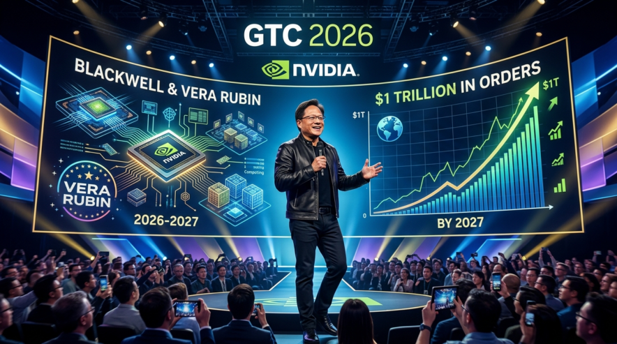 Nvidia GTC 2026:ジェンセン・ファンCEO、BlackwellとVera Rubinで2027年までに1兆ドルの受注を見込む