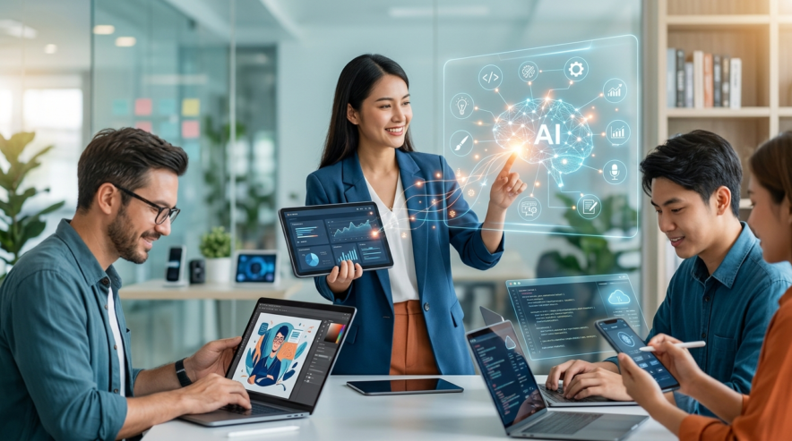 デザインの分野でも、AIは活躍します。CanvaのようなデザインツールにAI機能が搭載され、簡単な指示でプロ並みのデザインを作成できるようになりました。ロゴ作成、バナー広告、プレゼンテーション資料など、幅広い用途で活用できます。