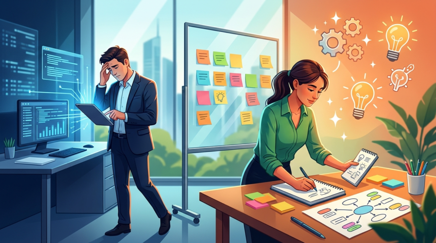 9d9の現場感覚では、ブレインストーミングで行き詰まった時、オフィスを飛び出して近所の公園を散歩することを推奨しています。五感を刺激し、普段とは違う視点を持つことで、思いがけないアイデアが生まれることがあるからです。