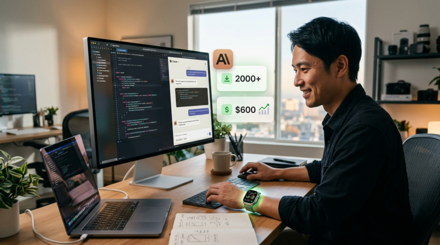 今回参考にするのは、海外のRedditユーザーがClaudeをペアプログラマーとして活用し、Apple Watchアプリを開発・収益化に成功した事例だ。彼は、Claudeにコード生成、デバッグ、アーキテクチャ設計をサポートしてもらい、開発プロセスを大幅に効率化できたという。2000ダウンロードと600ドルの収益は、AIペアプログラミングの可能性を示す一つの指標となるだろう。